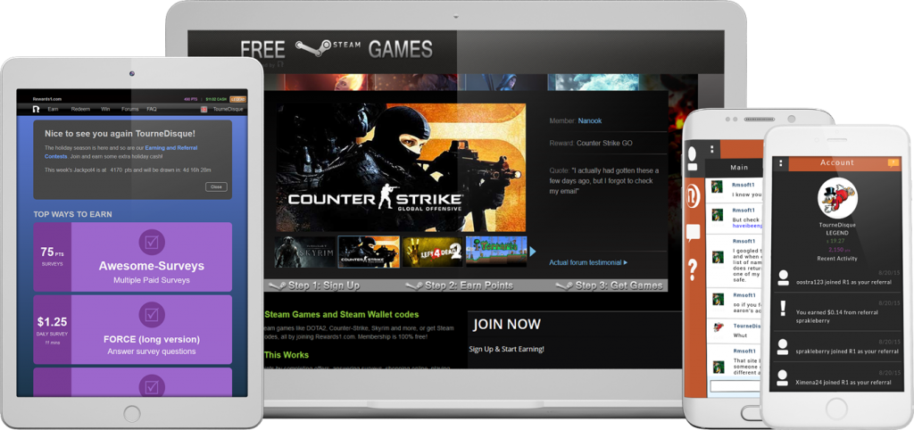 Sign up and confirm your email – an activation link will be sent to your address. Once logged in, the best ways to earn free Steam Wallet codes is to target the Offers on the main page, as well as Coin Offers, and Surveys, all found under the Earn menu. Earn points by completing offers, answering surveys, shopping online, playing games, watching videos or finishing tasks, and redeem them for virtual rewards like Steam games, Steam Wallet codes, in-game currency, giftcards, or actual merchandise from popular online vendors.